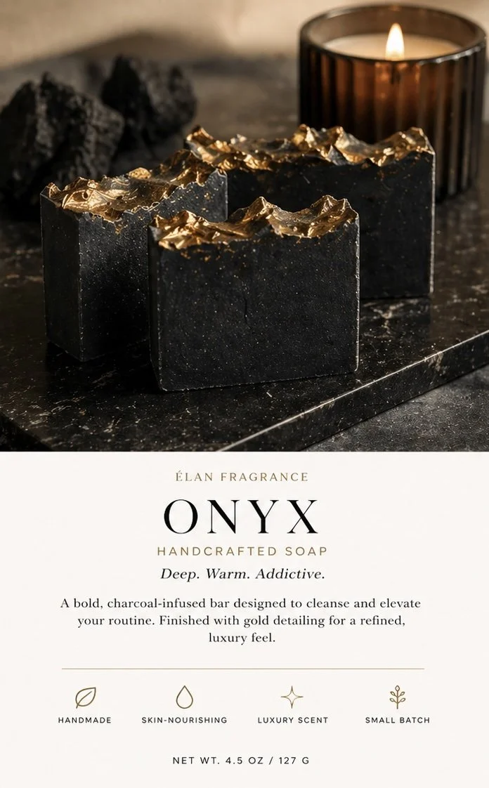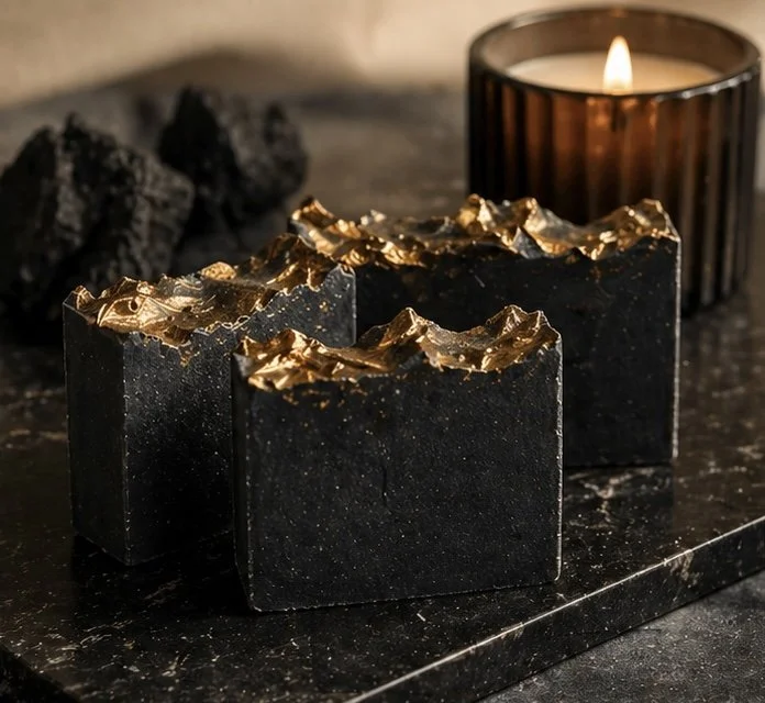 A bold, charcoal-infused bar designed to cleanse and elevate your routine. Finished with gold detailing for a refined, luxury feel.